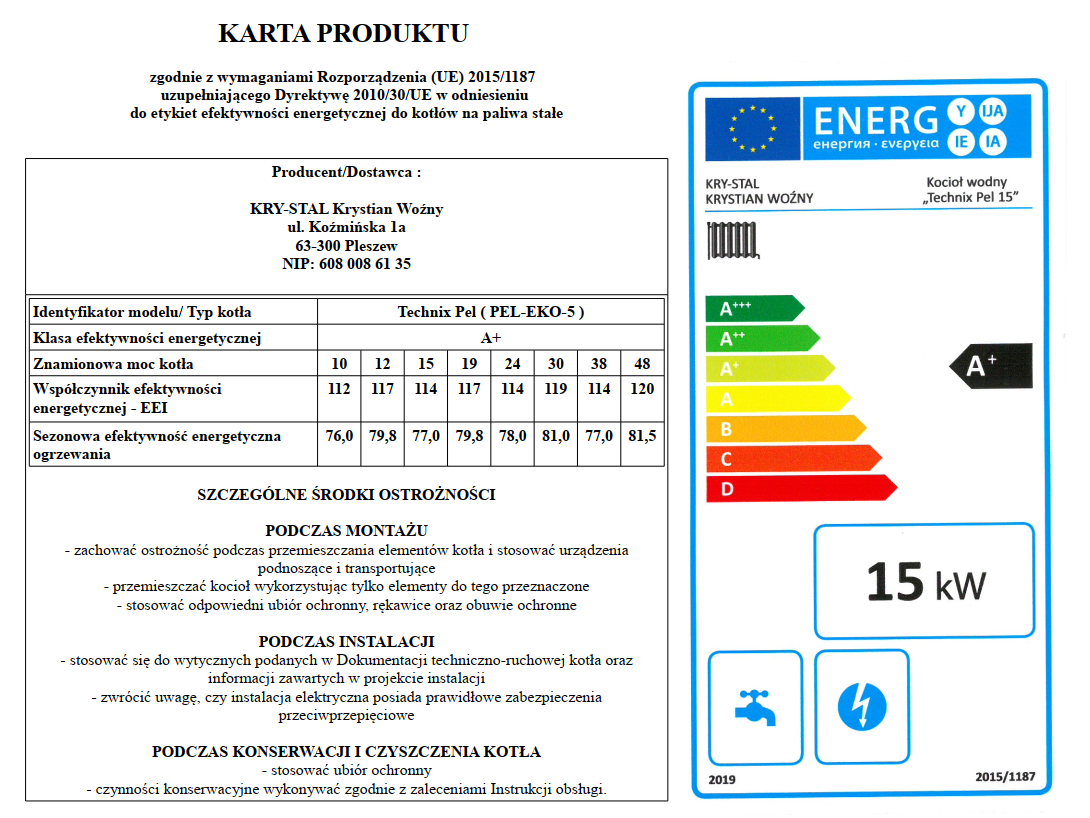 | klasa ekologiczna: | 5 klasa, EcoDesign - Ekoprojekt, klasa energetyczna A+ (dla pelletu) |