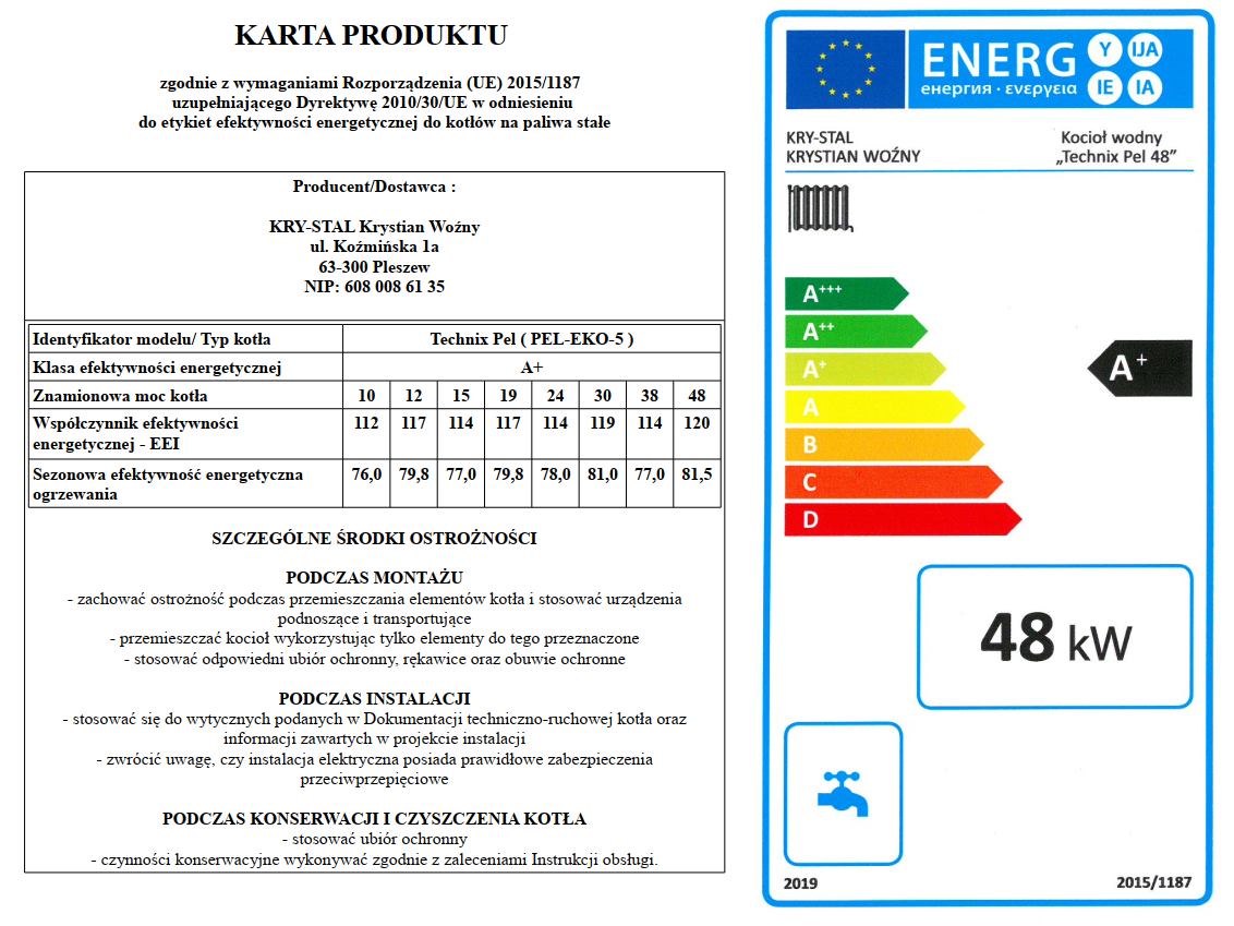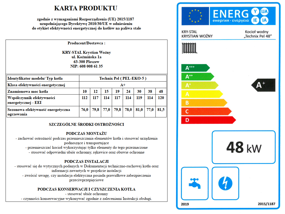 | klasa ekologiczna: | 5 klasa, EcoDesign - Ekoprojekt, klasa energetyczna A+ (dla pelletu) |