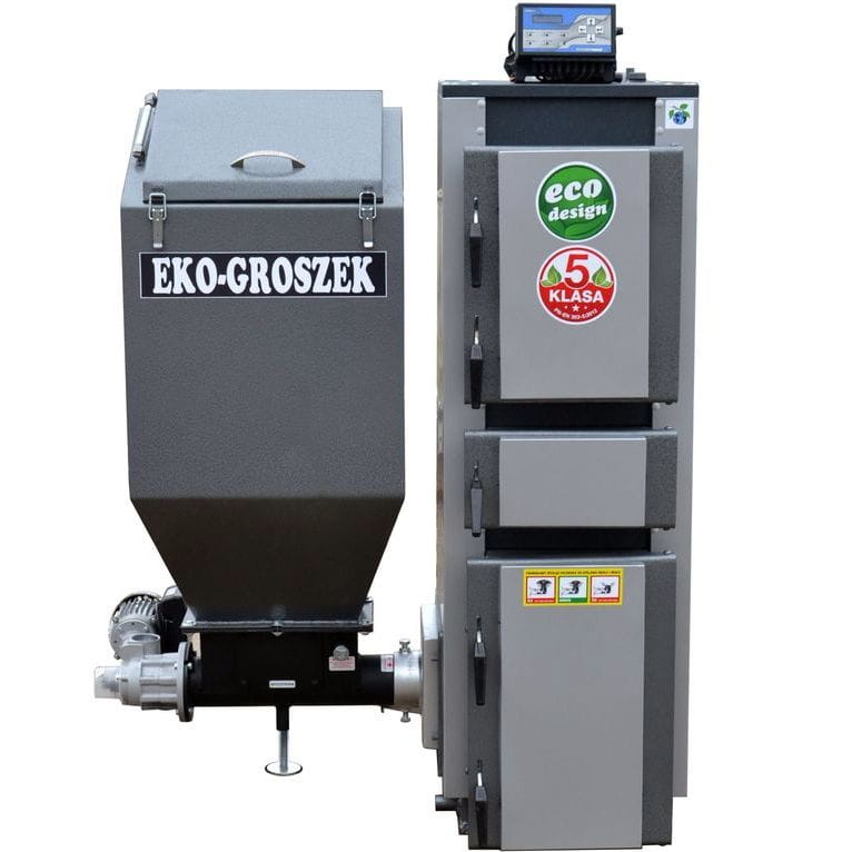 Kocioł Pleszew KG-EKO 10KW (100m2) EKOGROSZEK - SREBRNY podajnik retortowy ślimakowy Pancerpol + sterownik Iryd 605 , producent Pleszew 5 klasa / Ecodesign