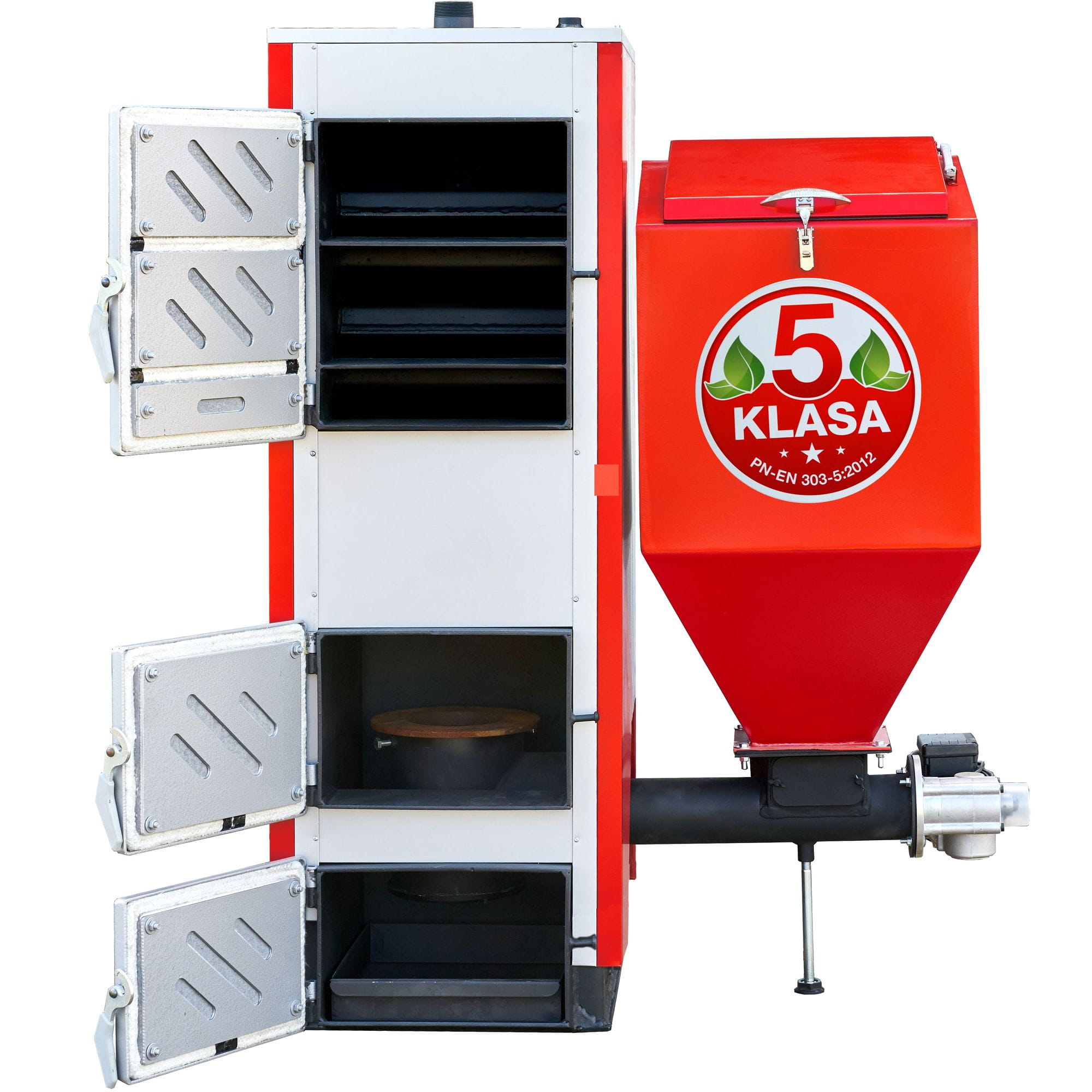 Kotły serii KG są kotłami niskotemperaturowymi systemu otwartego i nie podlegają warunkom dozoru technicznego, to nowa generacja kotłów o standardzie europejskim z automatycznym podawaniem paliwa wyposażonym w komorę spalania z ceramiką i wymiennik ciepła. Wprowadzenie nowych rozwiązań konstrukcyjnych tj. ceramiki oraz odpowiedni kształt i układ elementów części konwekcyjnej kanałów konwekcyjnych powoduje redukcję emisji szkodliwych substancji do granicznych wartości zanieczyszczeń i uzyskanie wysokich sprawności zgodnych z wymaganiami PN-EN 303-5;2012 w klasie 5 i ecodesignu, co potwierdza wysokie własności ekologiczne kotła na najwyższym poziomie.