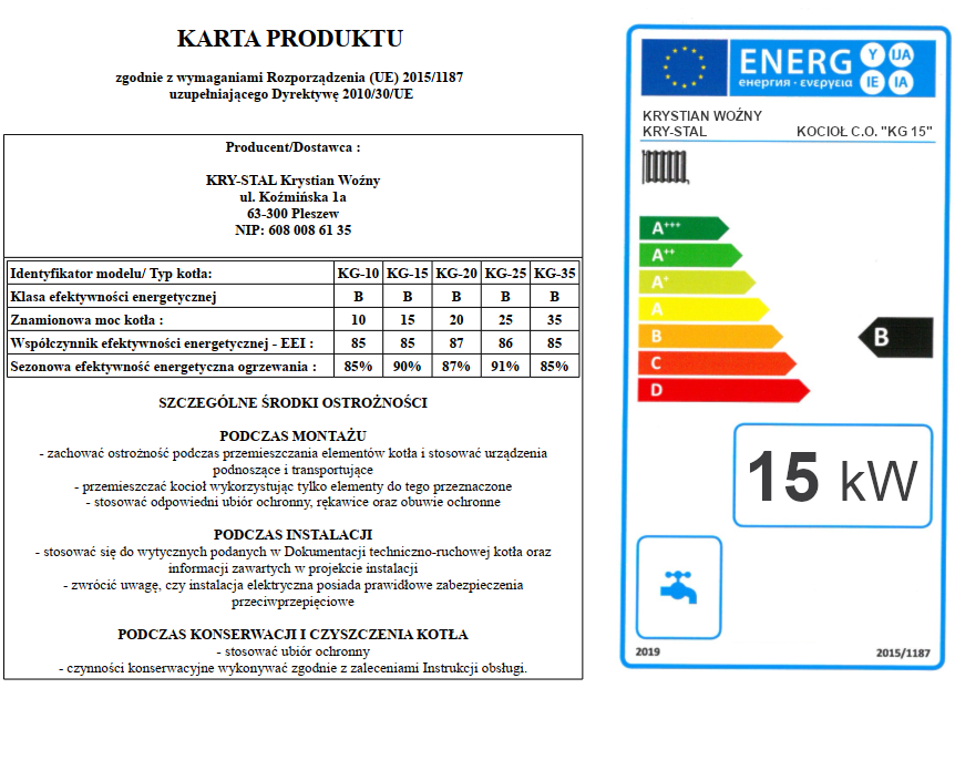 - karta produktu kotła