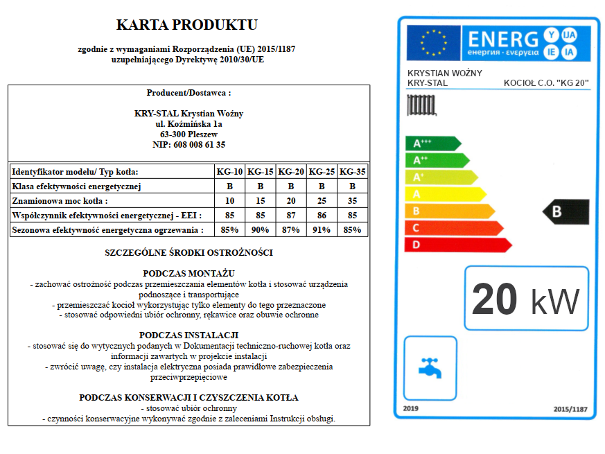 - karta produktu kotła