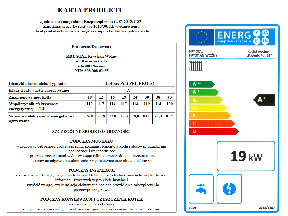 Dokumentacja kotła: ✅ tabliczka znamionowa ✅ etykieta energetyczna ✅ certyfikat 5 klasa, Ecodesign ✅ karta produktu kotła ✅ instrukcja obsługi kotła |