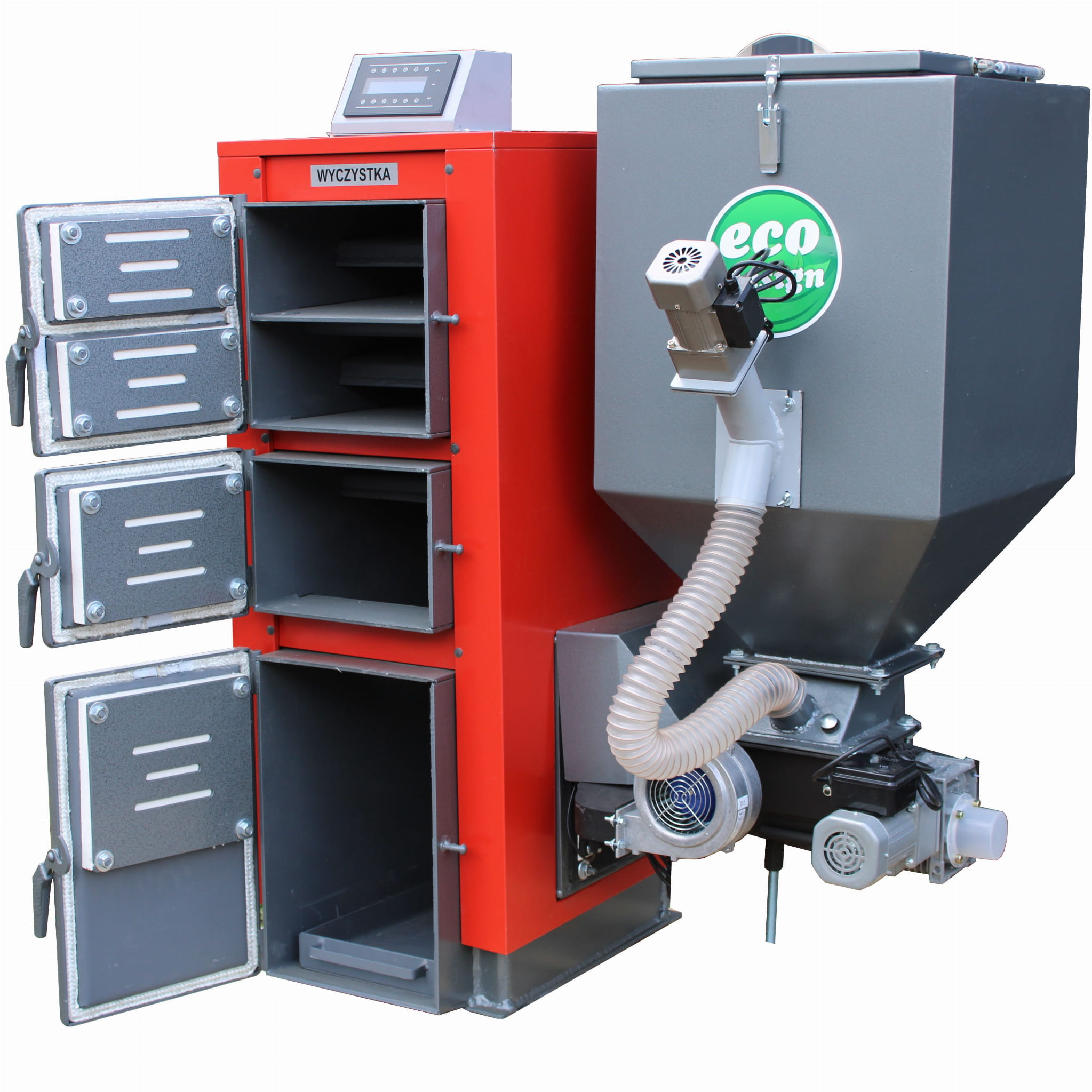 Opcje za dodatkową dopłata: ✅ inne wyjście kominowe z tyłu kotła i skierowane w bok lub w górę pionowo na kotle ✅ sterownik z kolorowym wyświetlaczem oraz modułem internetowym LAN RJ-45 ✅ termostat panel pokojowy przewodowy lub bezprzewodowy Auraton ✅ PAKIET PREMIUM: ślimak ze stali nierdzewnej Inox + silnik energooszczędny + cicha przekładnia planetarna |