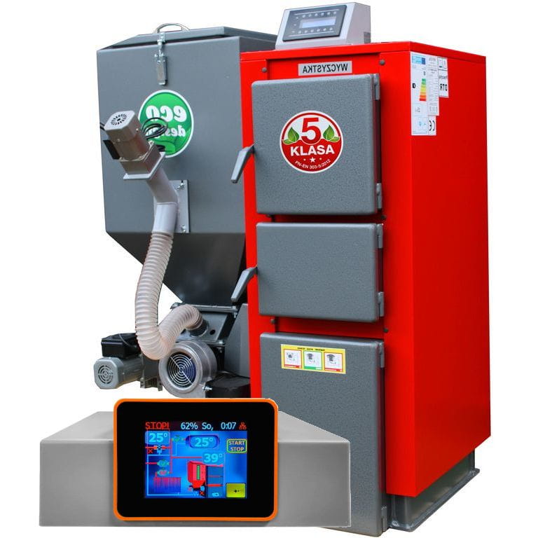 Obsługa kotła została ograniczona do niezbędnego minimum, czyli okresowego uzupełnienia pojemnika na paliwo oraz usunięcia resztek popiołu. Zastosowanie automatycznego algorytmu sterowania systemem podawania paliwa umożliwia bardzo korzystnie wpływa na ekonomiczność kotła oraz optymalizuje ilość zużytego opału. Kotły CO na pellet standardowo wyposażone są w palnik renomowanej firmy Technix, gwarantujący długotrwałą i bezawaryjną pracę. Równie ważnym elementem wyposażenia kotłów grzewczych jest nowoczesny sterownik z algorytmem PID odpowiadający za płynną regulację temperatury oraz zarządzanie procesem spalania.