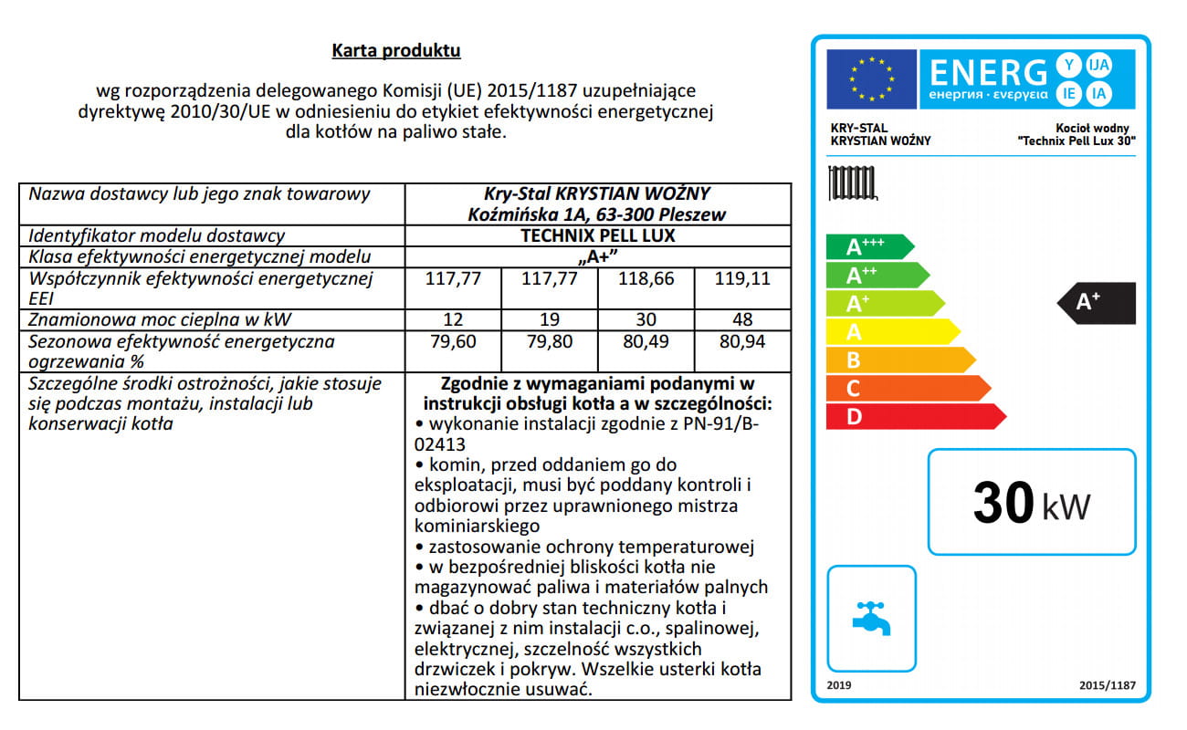 - karta produktu kotła
